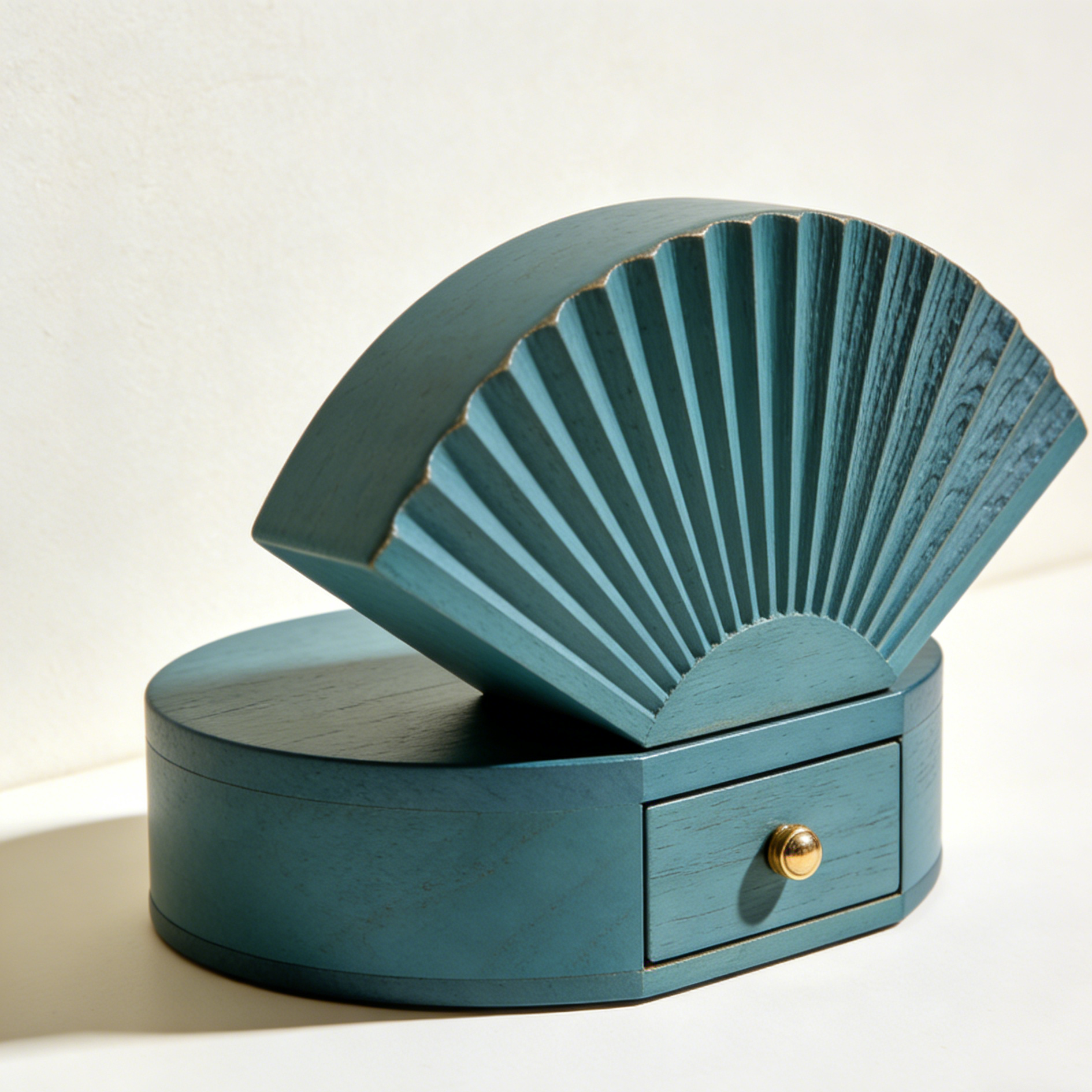 Drewniane pudełko na biżuterię w kształcie wachlarza